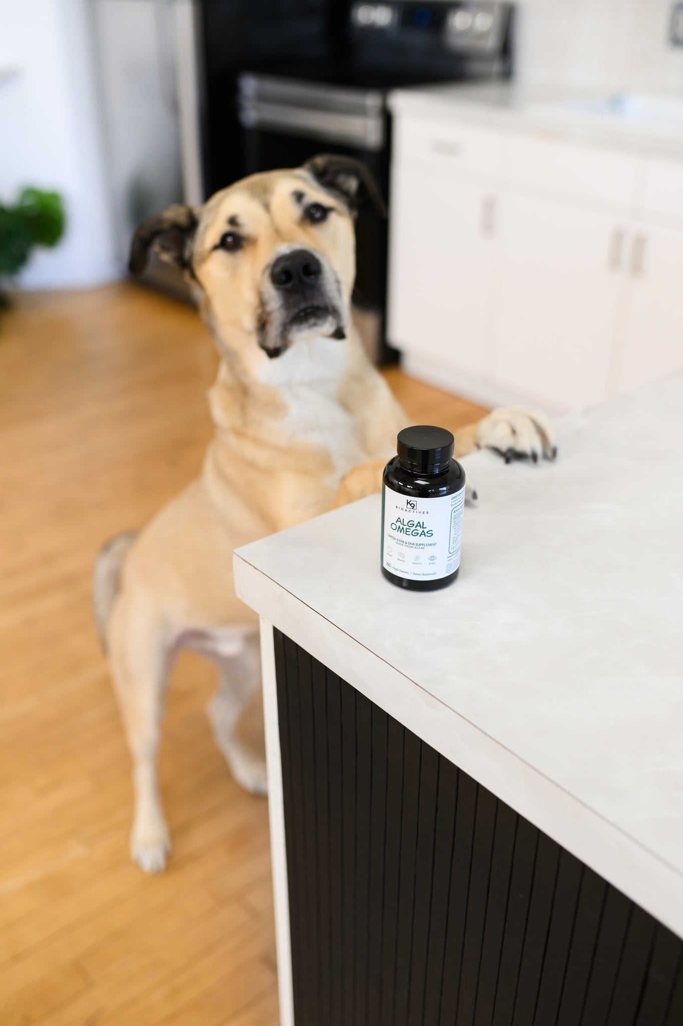 Our Algae Oil is a powerful, plant-based source of omega-3s EPA and DHA that delivers a minimum of 36% combined EPA + DHA (by weight) to support your dog’s brain, heart, and joints. Grown in clean, closed bioreactors not the ocean it’s naturally low in contaminants and far more sustainable than fish or krill oil.
